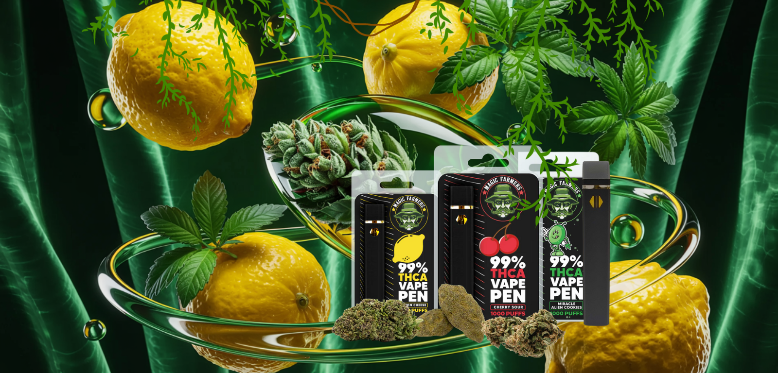 Jämför olika THCA Vape som Cookies, cherry eller Lemon smaker med 99% THCA styrka.